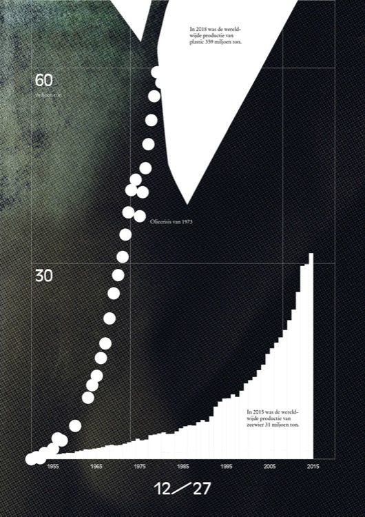 Dashed line shows global plastic production, In 2018 359 million tons.