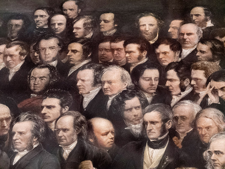 In 1843, painter Davids Octavius Hill was commissioned to make a large painting depicting all 470 delegates from the newly established Free Church of Scotland. To complete this enormous task and to make an equal portrait of everyone, he turns to a new technology; photography. The painting and photographs that Hill made with chemist Robert Adamson are early milestones in the development of photography. Rev. David Landsborough is on the lower right.