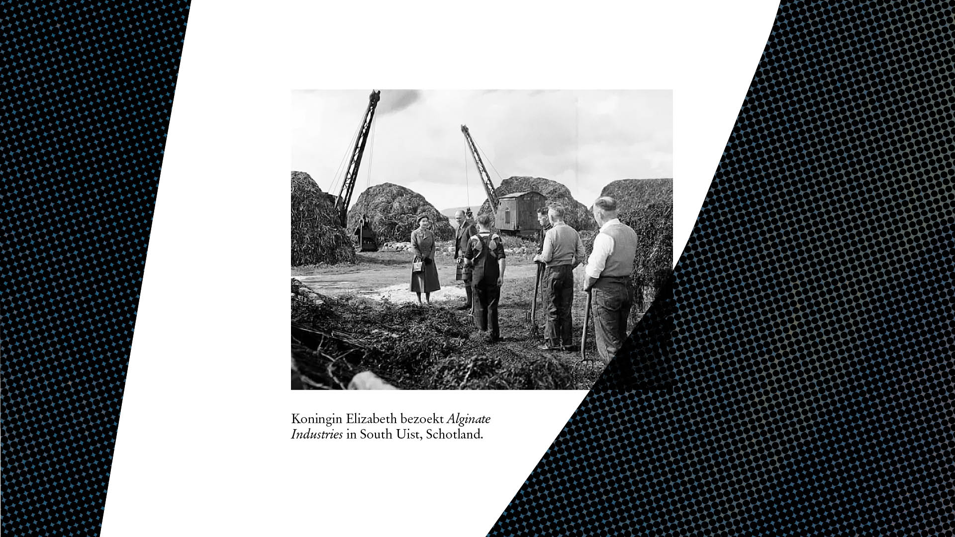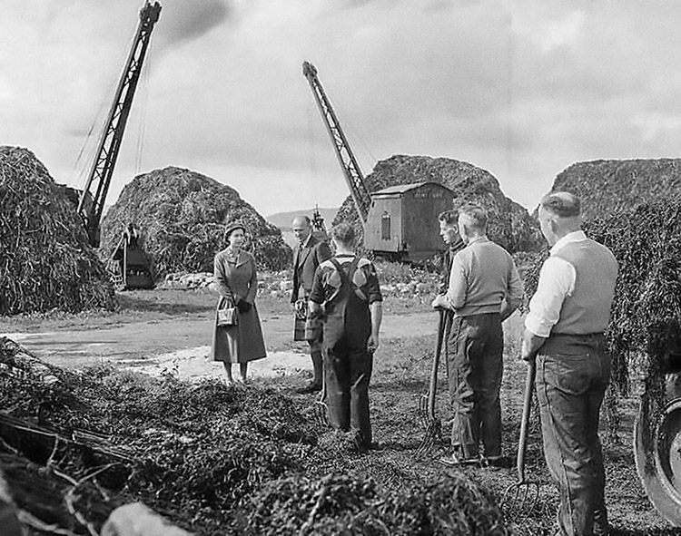 Queen Elizabeth visits the Alginate Industries plant in South Uist, Scotland, 15 August 1952