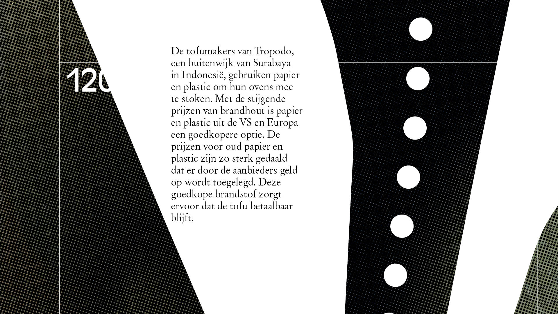 The tofu makers from Tropodo, Indonesia, use paper and plastic to fire their stoves. With rising fuel prices, paper and plastic from the US and Europe is a cheaper option. The prices for waste paper and plastic have fallen so much that the providers are investing money on them. This inexpensive option keeps the tofu affordable.